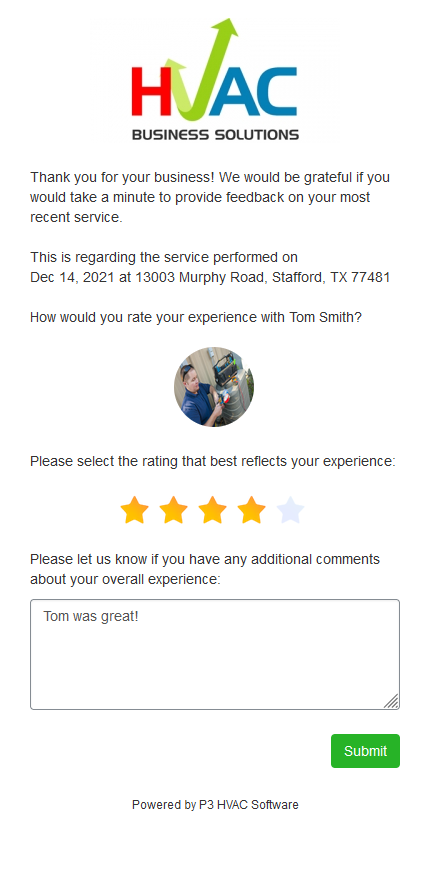 HVAC Business Solutions has really helped us get organized with scheduling and dispatch and consistent. Our techs and the people in the office love how simple it is to use and our customers appreciate the professional level of service we are able to deliver using the system. Anytime we need assistance, Meghan and Jason are always pleasant and helpful when we call. P3 HVAC Solutions is a 10 out of 10.